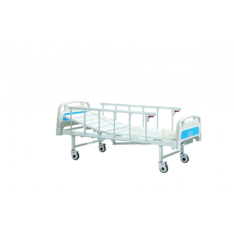 HOSPITAL BED • Made from epoxy coated steel square tubes. • Metal mesh mattress platform. • Bed Head/Foot from ABS. • Back section adjustable by mean of handcrank. • Ends with anti-slip stoppers • Without castors • Dimensions: 190 x 80...