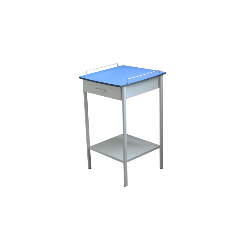 KNOCKDOWN BESIDE TABLE • Sheetmetal frame epoxy coating • 1 drawer and 1 cupboard • Internal adjustable metal shelf • Top Tablet from strong ABS • Without castors MO-102030