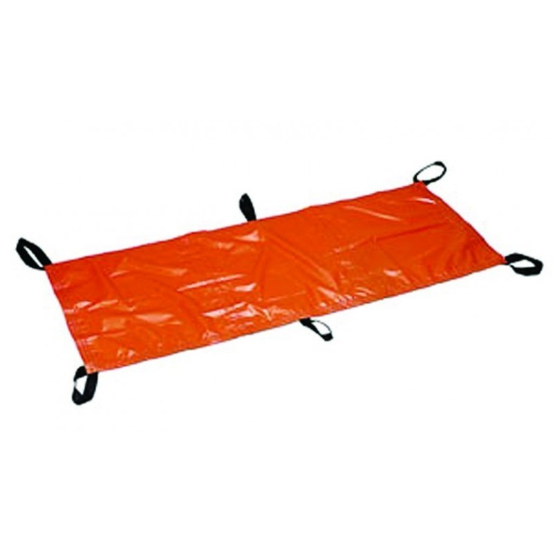 FOLDABLE STRETCHER • 4 PVC handles • Strong cover reinforced at the ends, Washable. • 4 Aluminium feet • Foldable in 4 • Dimensions: 185 x 55 x 14cmIn Option: • Transport bag with zipper