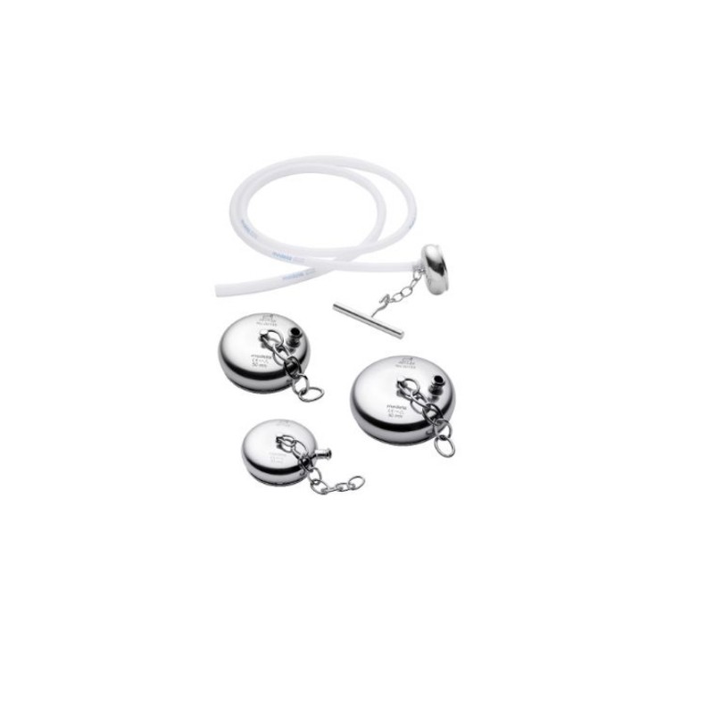 SUCTION CUPS • Model MALMSTROM • Made from stainless steel • Inner plate from stainless steel with chain and traction handle. • Autoclavable AP-101011-40 Cup ø 40 mm AP-101011-50 Cup ø 50 mm AP-101011-60 Cup ø 60 mm