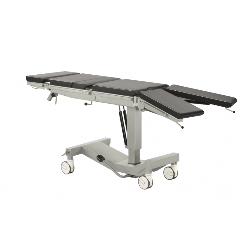 UNIVERSAL OPERATING TABLE enables carrying out different positions: gynaecology, urology, laryngology, ENT, thorax, ophtalmology and orthopaedics department. • 1990mm x 480mm • Max height 940mm • Min height 700mm • Adjust 240mm max