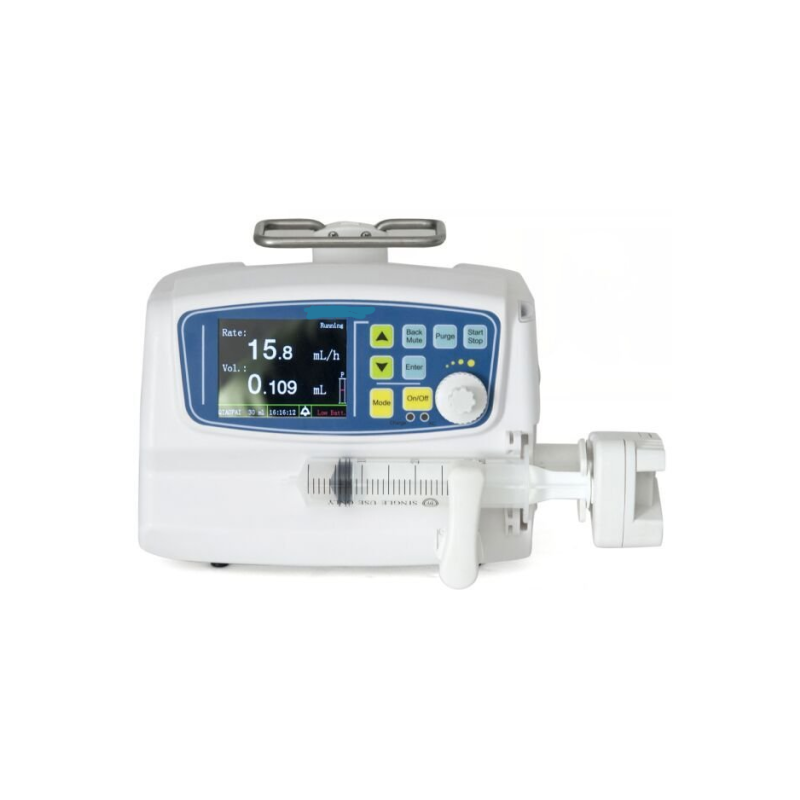 • Additional Features : Real-time infused volume,automatic syringe identification, mute button, purge, bolus, anti-bolus,automatic power switching,system memory, history log