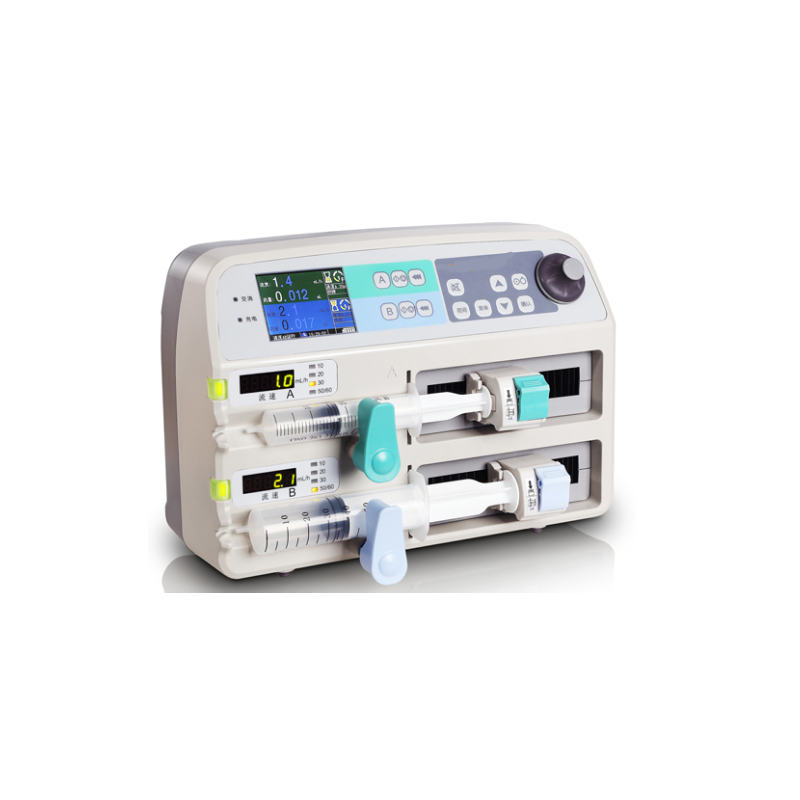• Additional Features : Real-time infused volume,automatic syringe identification, mute button, purge, bolus, anti-bolus,system memory , history log , separete channel alarm ,power saving mode