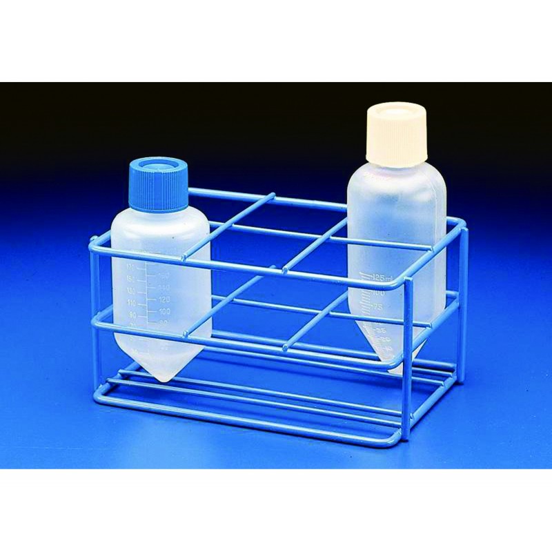 RACK FOR FLASKS, BOTTLES, CYLINDERS • From metal covered with PVC • With dropping plate LAB-101420-60 60 Tubes 5 flasks LAB-101420-12 12 Tubes 11 flasks LAB-101420-55 55 Tubes