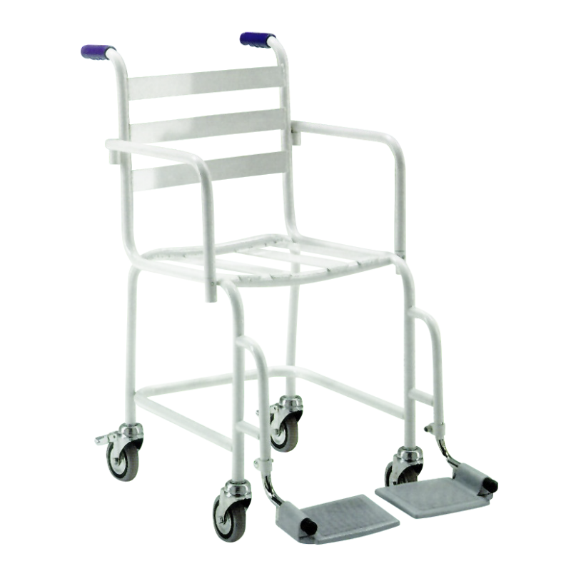 WHEEL CHAIR • Constructed from tubular chrome plated steel • Fixe backrest • Seat padded from nylontex reinforced, washable and flame retardant. • With a pocket at the backrest. • Foot rest adjustable in height, laterally foldable...