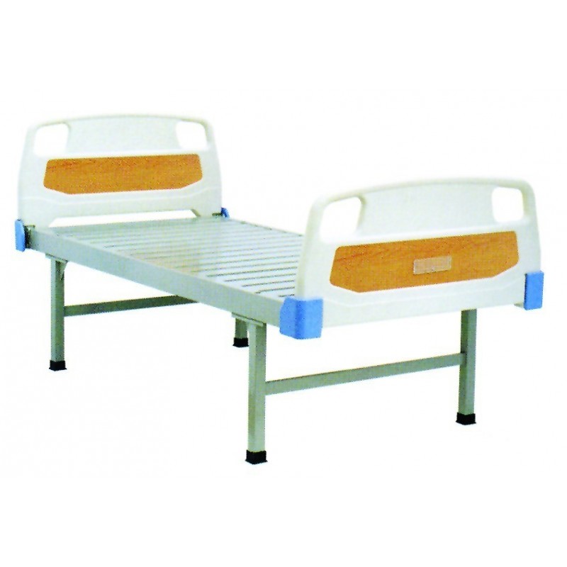 HOSPITAL BED • Made from epoxy coated steel square tubes. • Metal mesh mattress platform. • Bed Head/Foot from ABS • With castors 50mm diam. 2 with brake. • Dimensions: 190 x 80 x 50cm