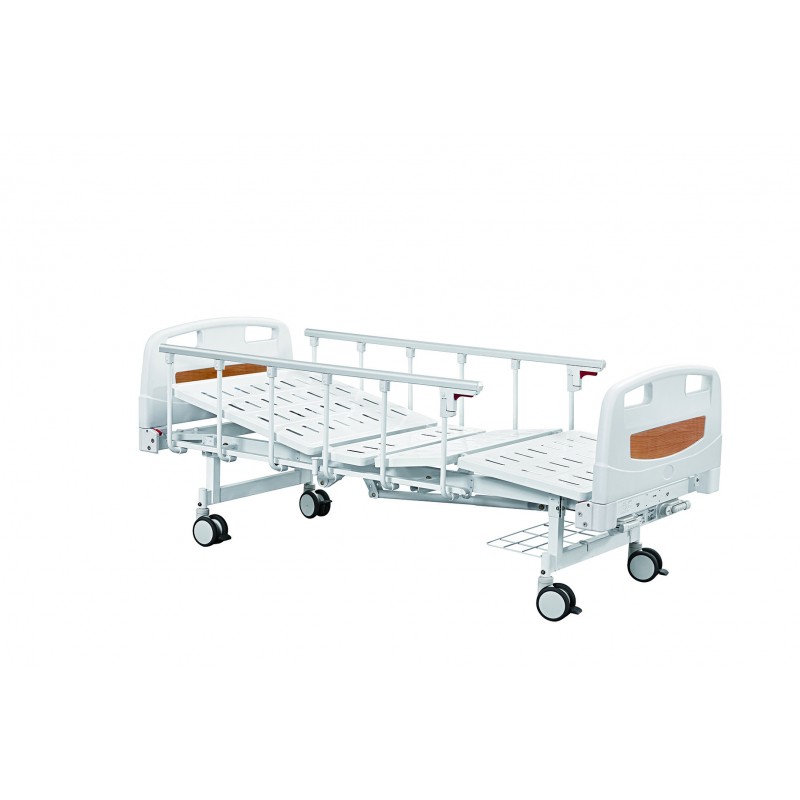 MULTIPLE SECTIONS BED • Constructed from tubular steel with epoxy finish • Bed ends from ABS • 4 Sections mattress platform, epoxy painted steel weldmesh. • Tilting side rails • Adjustable backrest and leg section by mean of hand...