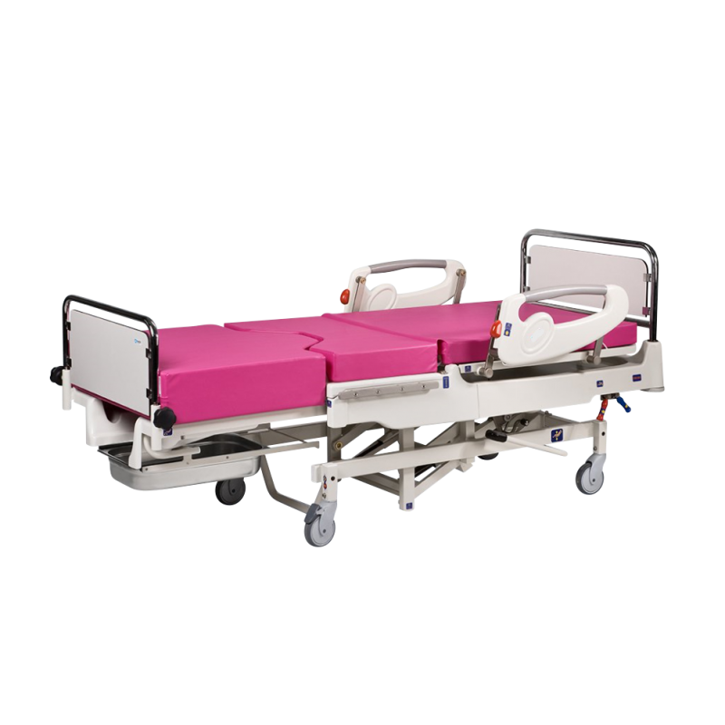 • The bed is equipped in rails that can be folded below the level of the bed, which makes getting off the bed easier for weak patients.