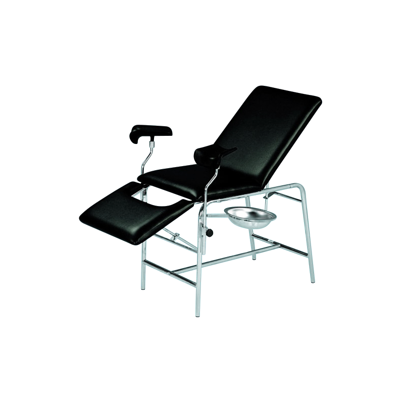 GYNAECOLOGICAL EXAMINATION COUCH 3 sections • Structure made of chrome plated steel square tubes • Delivered dismantled • Adjustable backrest and anterior part • Black fireproof (Class 1 IM) padding and covering made of strong washable...
