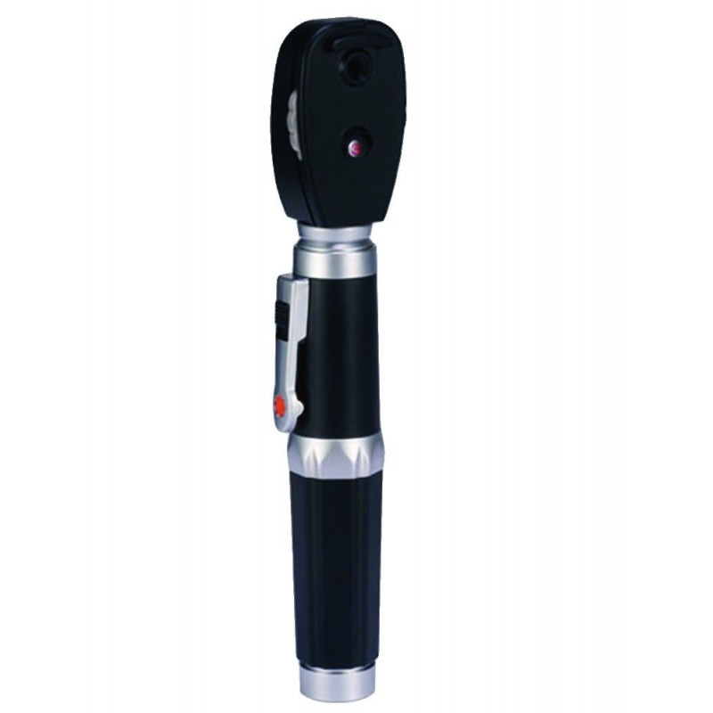 OPHTALMOSCOPE LED • 2,7 V Led illumination • Chrome plated handle for 2 C batteries (not included) • Pin fitting connection • One plastic frame ophtalmoscope head • Corrective lenses ranging from 0 to +20 and from 0 to -20 diopters •...
