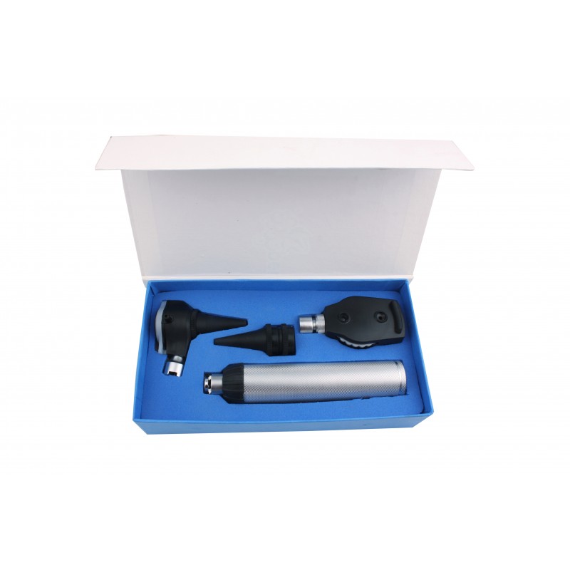 ENT SET COMPOSITION • 1 handle with optical SMT-LED technology, low power consumption • 1 otoscope head with FO Led illumination - anti scratch window with 3x magnification • 1 ophtalmoscope head with coaxial parallel light source Led...
