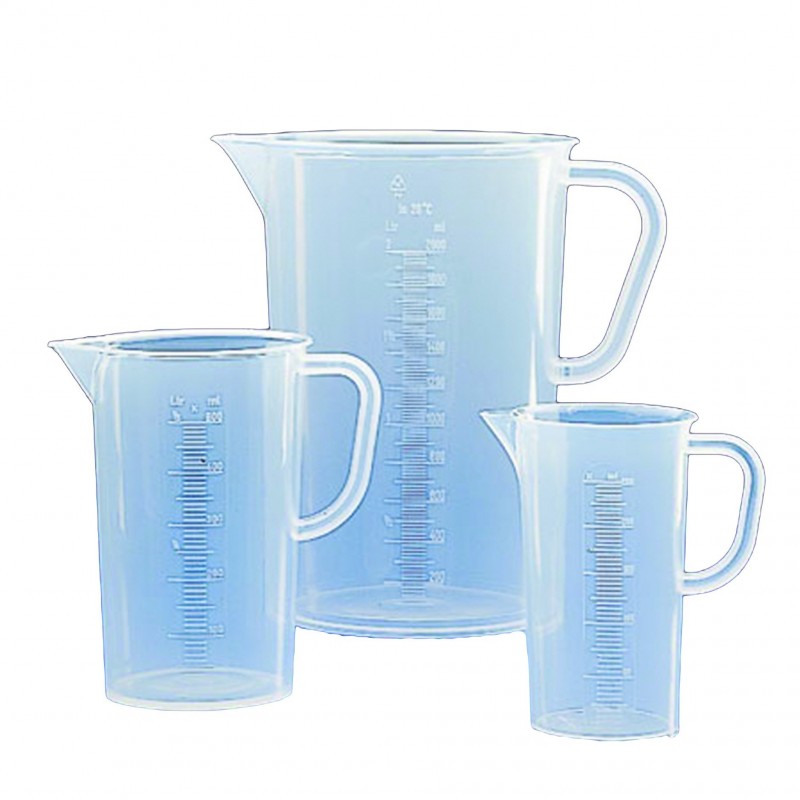 BEAKERS • From polypropylene • With spout • Graduated Low LAB-101040-25 25ml LAB-101040-50 50ml LAB-101040-100 100ml LAB-101040-250 250ml LAB-101040-500 500ml High LAB-101041-1L 1000ml LAB-101041-2L 2000ml LAB-101041-5L 5000ml