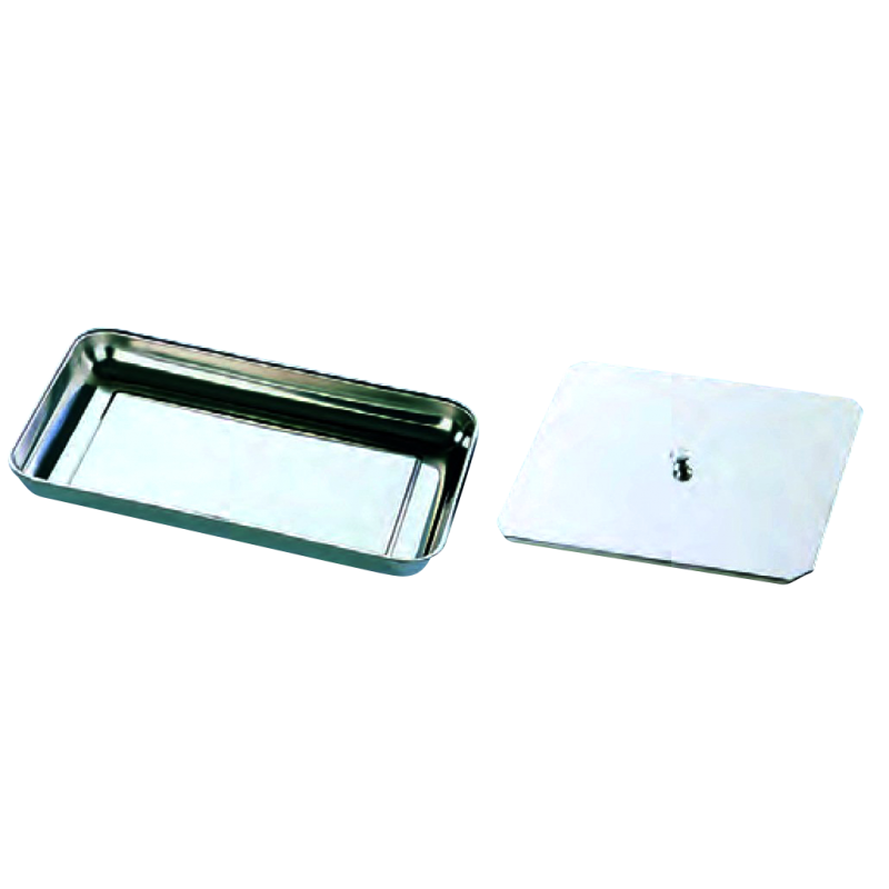 INSTRUMENT TRAY • Entirely made of stainless steel • Pressed without welding Without lid IN-100079 20 x 10 x 1,7cm IN-100080 20 x 15 x 2,5cm IN-100081 26 x 18 x 3cm IN-100082 30 x 22 x 3cm IN-100083 35 x 25 x 4cmStainless steel lids...
