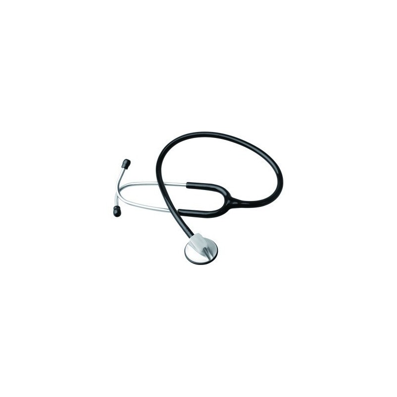 SINGLE HEAD STETHOSCOPE FOR CHILD • Single-head chestpiece for child from aluminium alloy • 1 Chromed steel lyra • 2 Ear tips PVC • 1 Chestpiece diameter 38 mm • 1 Standard single PVC tubing
