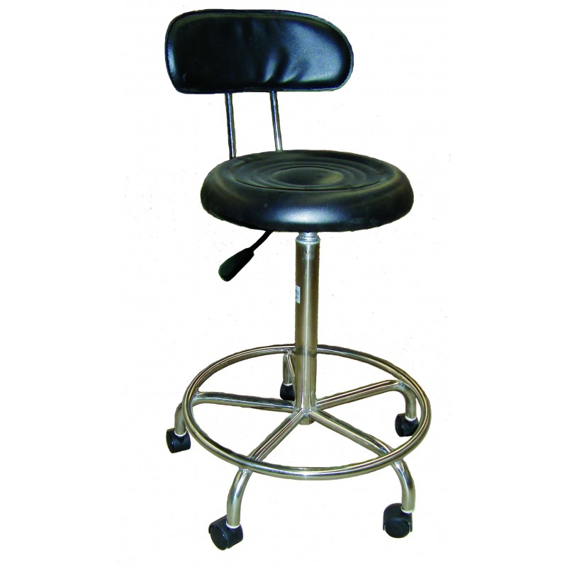 SURGEONS STOOL PAUCHET TYPE • With hydraulic elevation and brake • Construction from stainless steel, • Seat stuffed with strong plastic washable, flame retardant, very confortable • Base with foot rest • On castorsMO-102330: Model...